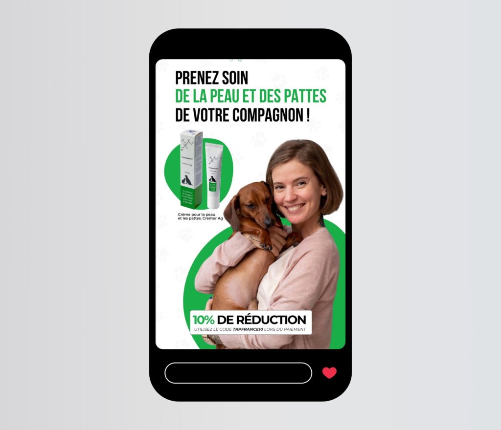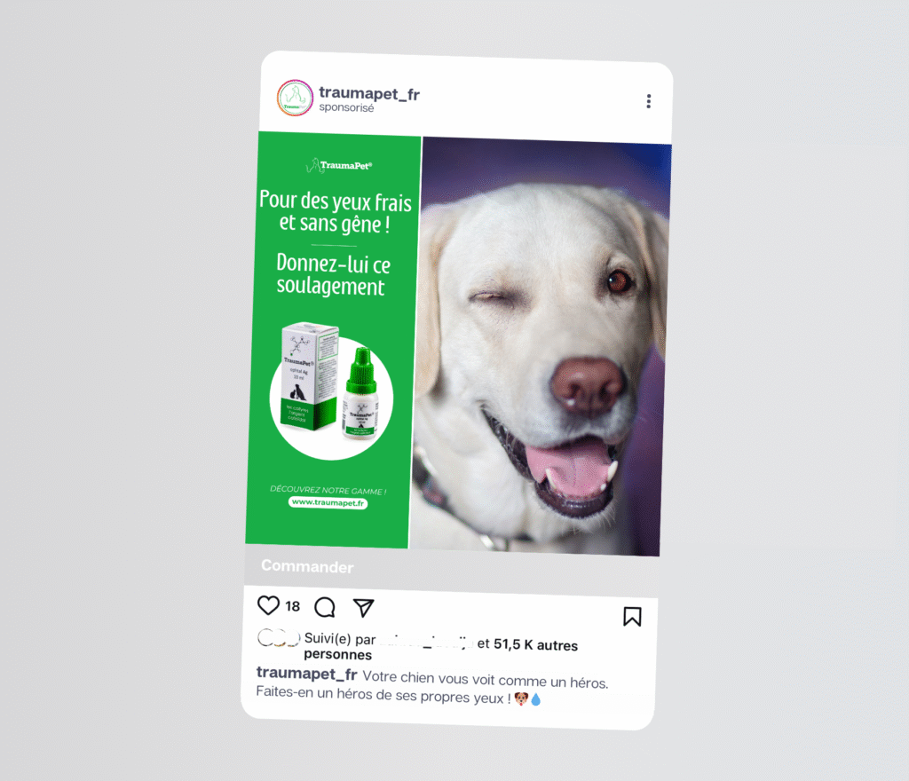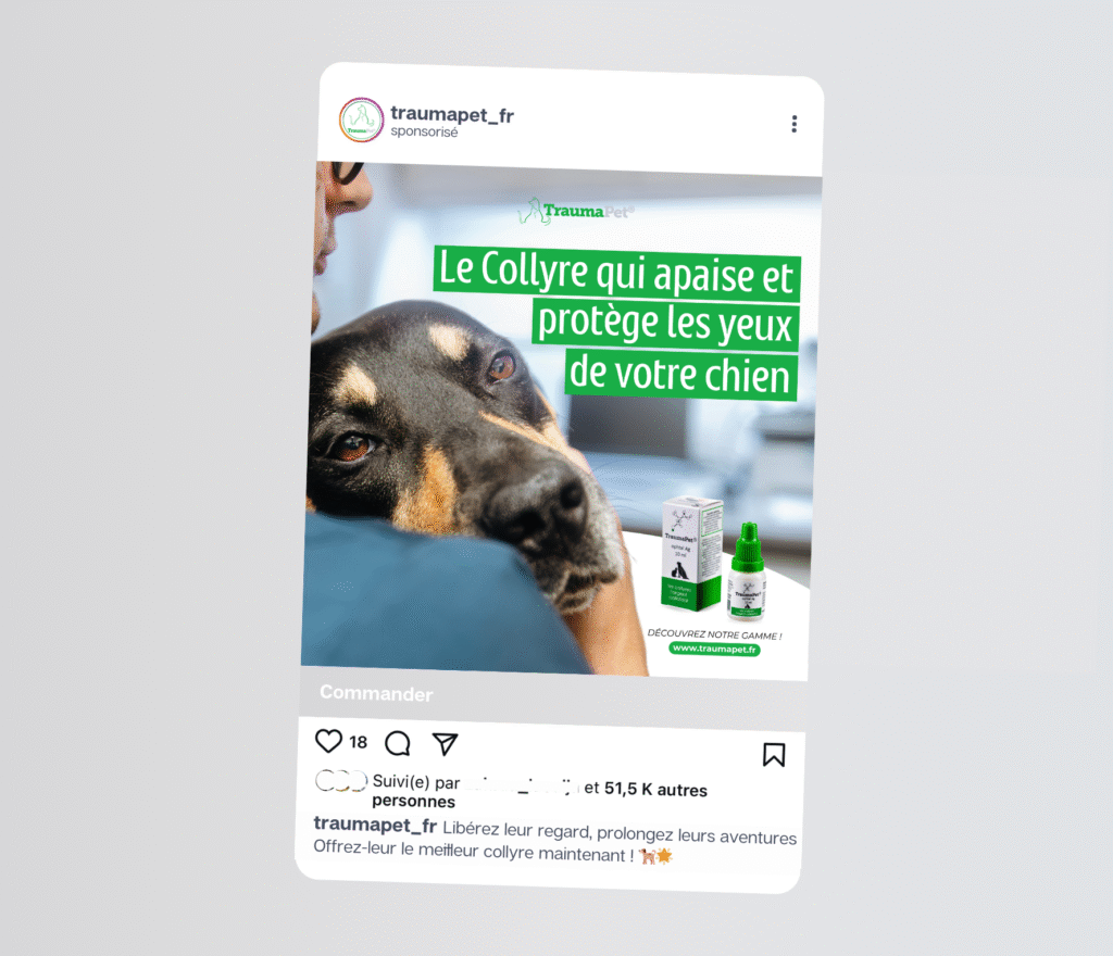 Traumapet est une marque spécialisée dans les soins innovants pour animaux de compagnie, basée sur l’utilisation de l’argent colloïdal pour le traitement naturel des yeux, oreilles, dents et pelage. Dans le cadre de son arrivée sur le marché français, j’ai accompagné le lancement digital en développant la stratégie Meta Ads, pour objectif de renforcer la notoriété de la marque et de générer des ventes en ligne via l’e-shop